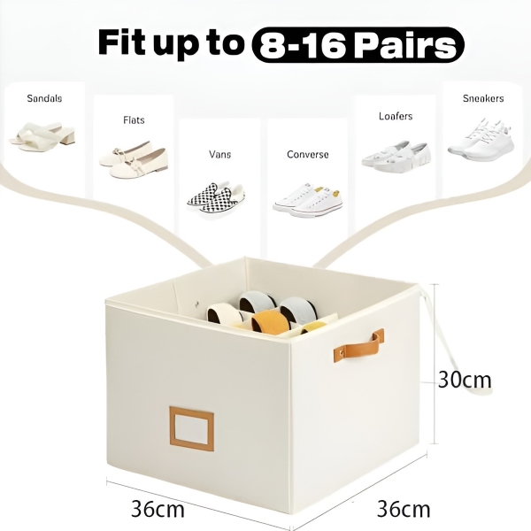 Organizér na obuv SHOVERA je navrhnutý tak, aby pojal 8-16 párov topánok, vrátane sandálov, papúč a tenisiek, v kompaktných rozmeroch 36x36x30 cm. Jeho skladací dizajn umožňuje jednoduché uskladnenie, keď sa nepoužíva, čo ho robí ideálnym pre domácnosti, internáty a sezónnu obuv.